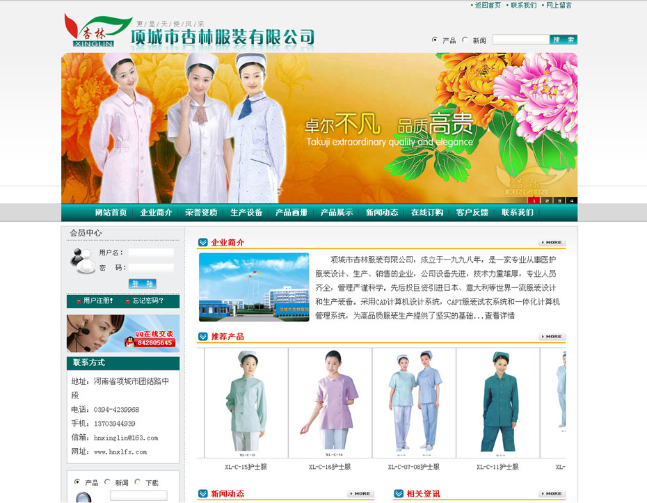 案例介紹:項城市杏林服裝有限公司,成立于一九九八年,是一家專業(yè)從事醫(yī)護(hù)服裝設(shè)計、生產(chǎn)、銷售的企業(yè),公司設(shè)備先進(jìn),技術(shù)力量雄厚,專業(yè)人員齊全,管理嚴(yán)謹(jǐn)科學(xué)。先后投巨資引進(jìn)日本、意大利等世界一流服裝設(shè)計和生產(chǎn)裝備。采用CAD計算機(jī)設(shè)計系統(tǒng),CAPT服裝試衣系統(tǒng)和一體化計算機(jī)管理系統(tǒng),為高品質(zhì)服裝生產(chǎn)提供了堅實的基礎(chǔ)。現(xiàn)主要經(jīng)營產(chǎn)品有:護(hù)士服系列、醫(yī)生服系列、手術(shù)服系列、工勤服系列、標(biāo)志服系列及手術(shù)單、包布類、床上用品、醫(yī)用布料等。